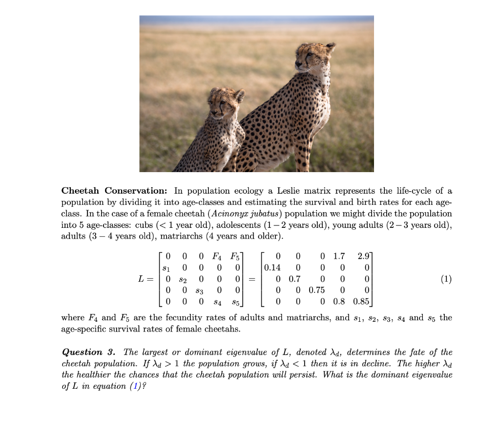 Solved Cheetah Conservation In Population Ecology A Leslie Chegg Com